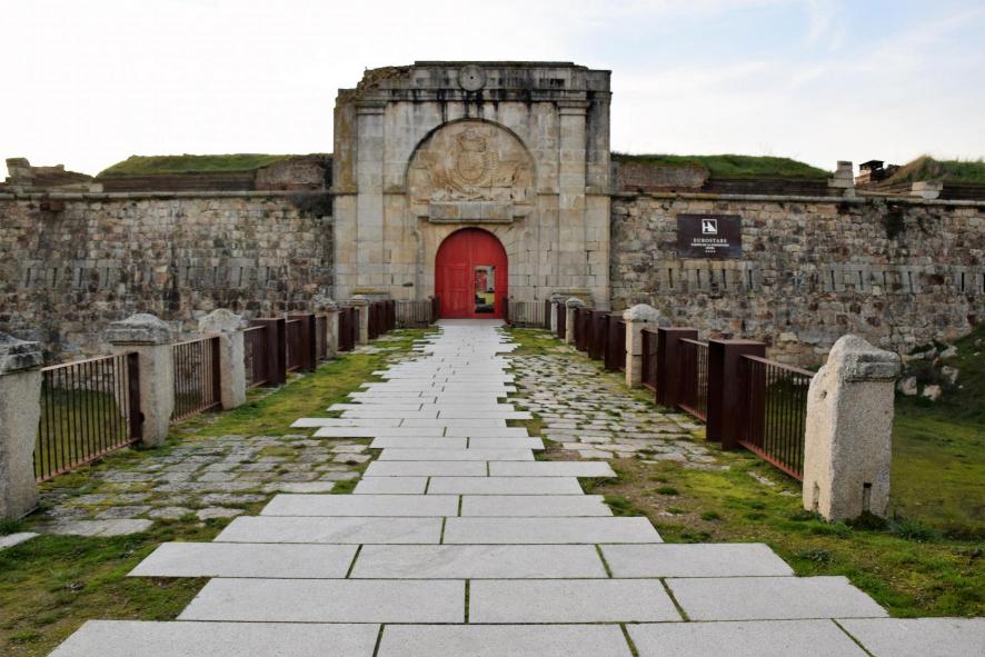 Entrada al fuerte de Aldea del Obispo en la raya con Portugal, en Salamanca, haciendo juego... de guerra con el fuerte de Almeida, del lado portugués... Duras piedras, claros símbolos heráldicos sinónimos de ideas firmes. No me agradan esas lanchas modernas pulimentadas que intentan remediar los estragos del tiempo. No parece conveniente echar vino nuevo en odres viejos... Hay que dejar espacio para la ensoñación... mejor talvez sea no poner nada... o en todo cso, piedrass como las de muestra que...