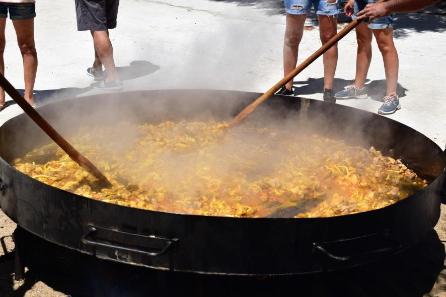 Preparando la paella festiva,