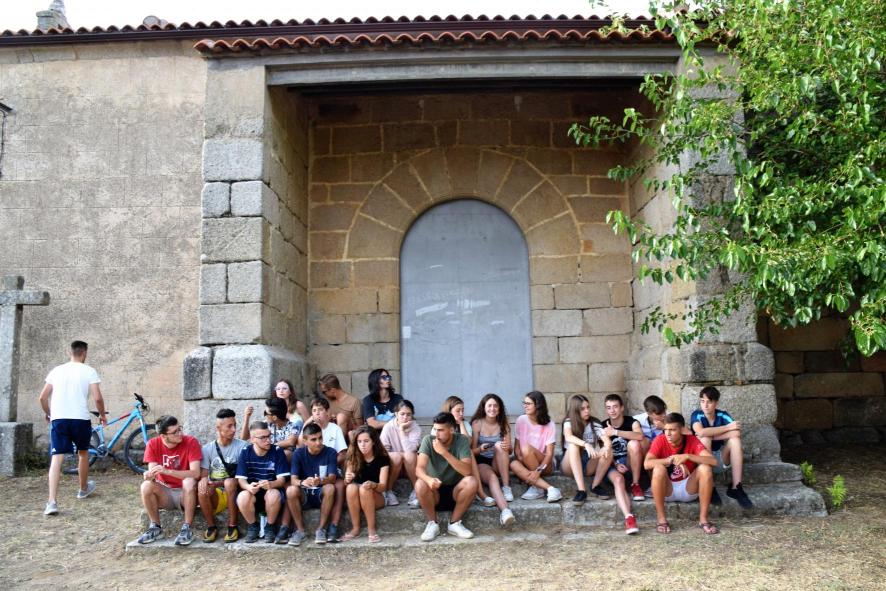 Jóvenes en el atrio de la iglesia,