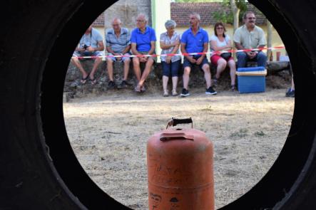 Rueda y bombona en el atrio de la iglesia,