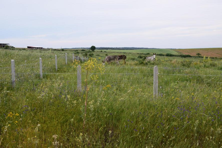 Asnos en el prado,