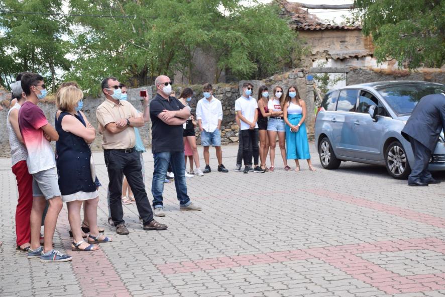 E la puerta de la iglesia esperando la subasta de las Roscas de Nuestra Señora,