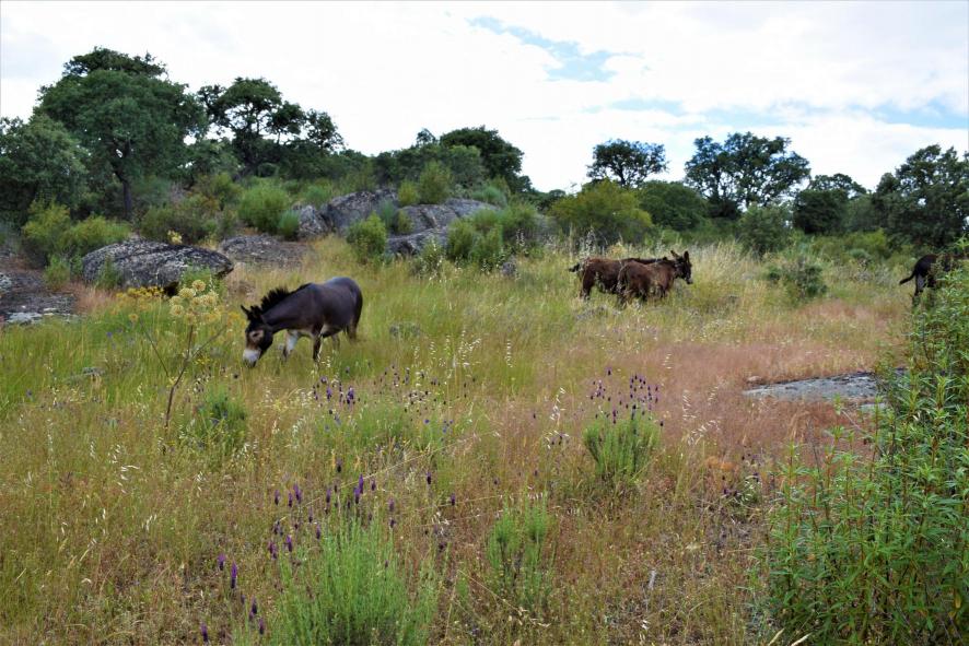 Asnos en el campo,