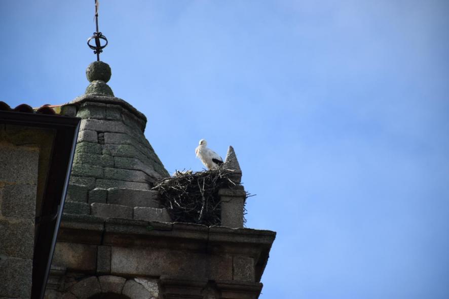 Cigüeña en la torre de la iglesia,