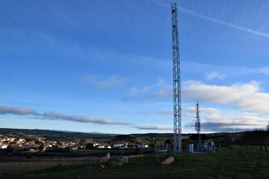 El pueblo y antenas de comunicación,