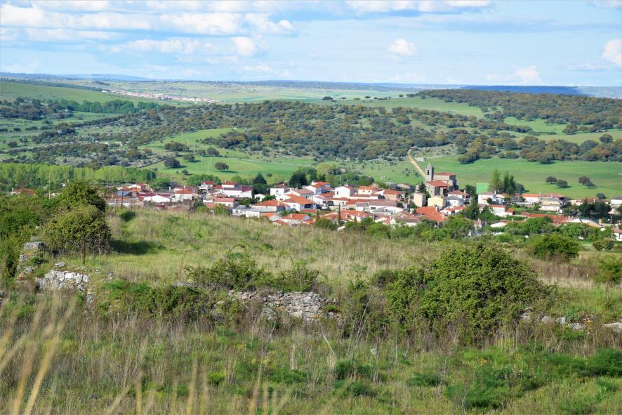 Aldea del Obispo en primer término, a la izquierda y al fondo, Villar del Ciervo,