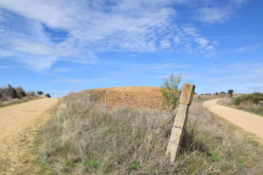 Dos caminos, izquierda y derecha, en el centro la escombrera clausurada,