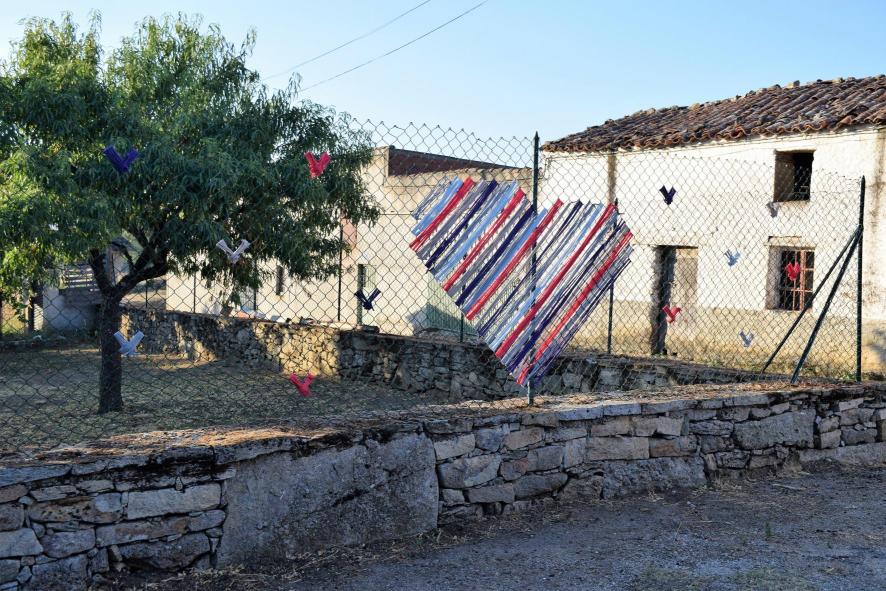 Corazón de colores en una verja,