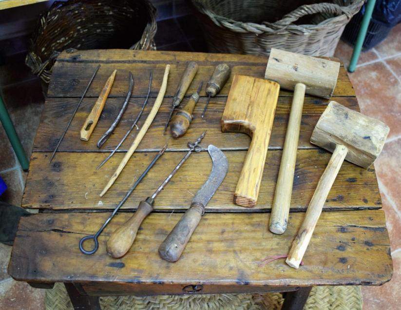 Herramientas que utilizaban los artesanos que trabajaban fibras vegetales,