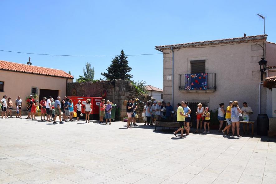 Plaza Mayor. Cola para recibir la correspondiente ración de paella,