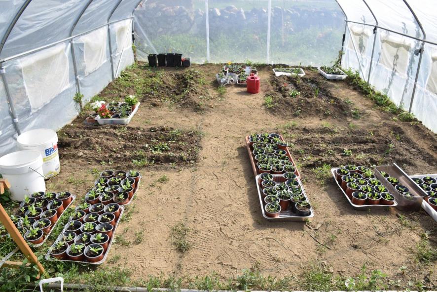 Vivero de flores en un invernadero,