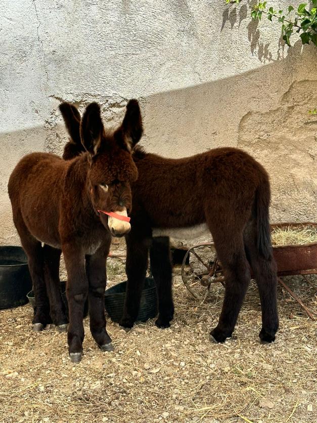 Burritos de raza zamorano-leonesa, madre con su cría,