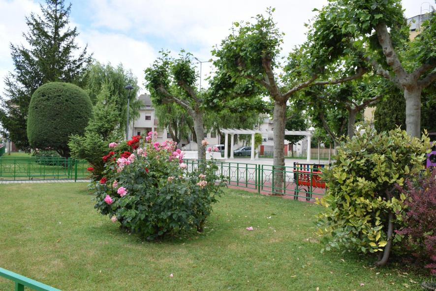 Zona ajardinada en el centro del pueblo,