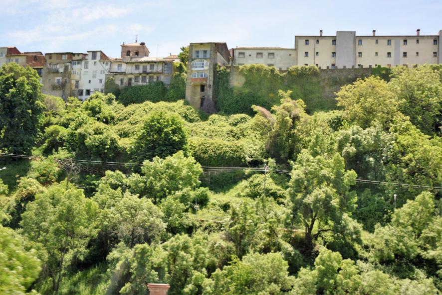 Casas destacando sobre el verde de la ladera,