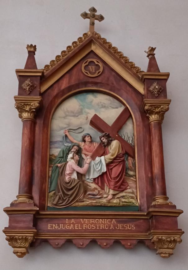 La Verónica enjuga el rostro a Jesús. Paso del Calvario en la Iglesia de San Esteban,