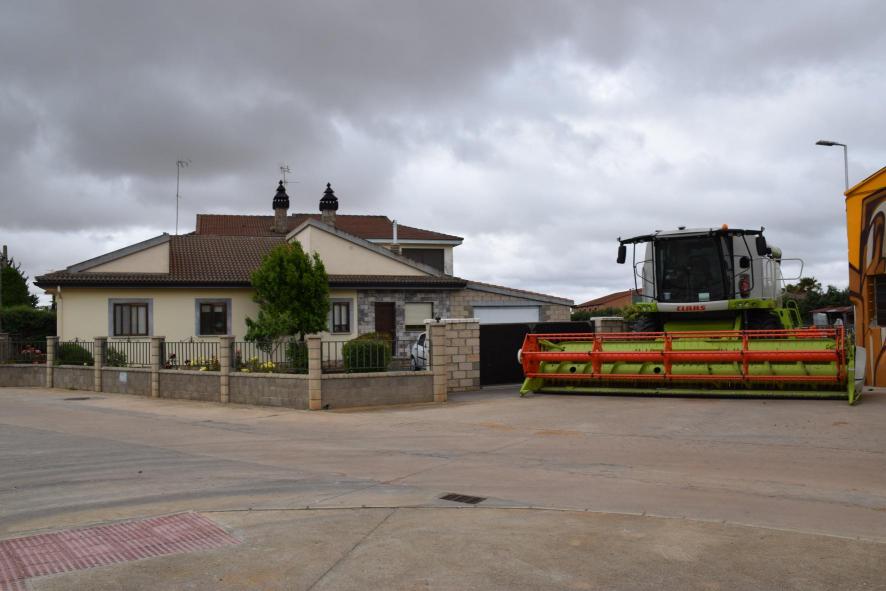 Máquina cosechadora tan grande como una casa,