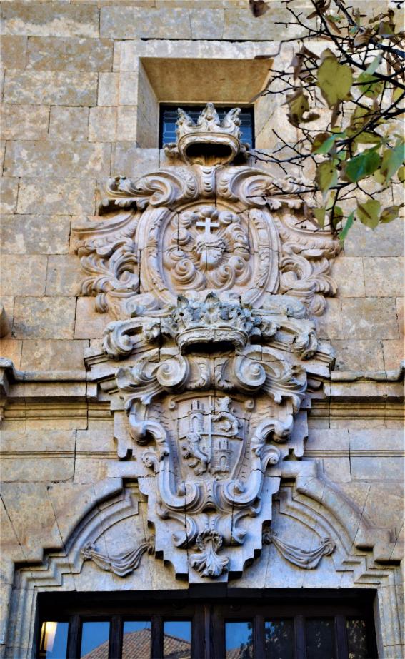 Escudo en la portada de lo que fue Convento de las Franciscanas Descalzas,