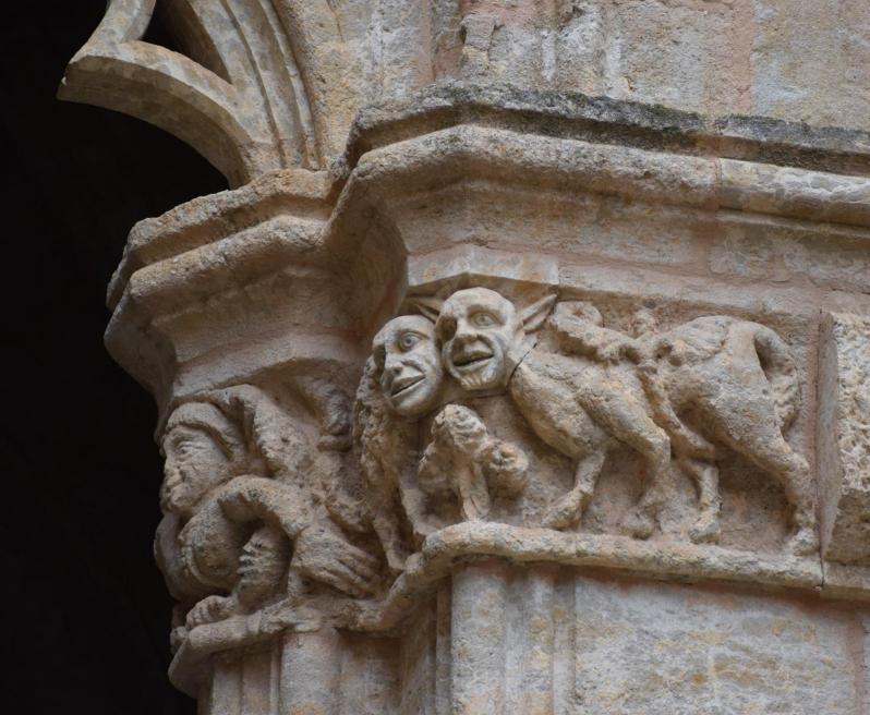 Detalles en capiteles del claustro de la catedral de Santa María,