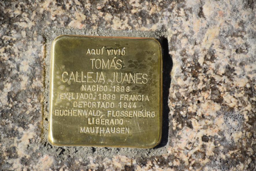 Stolperstein colocado el el suelo de la Plaza Mayor,