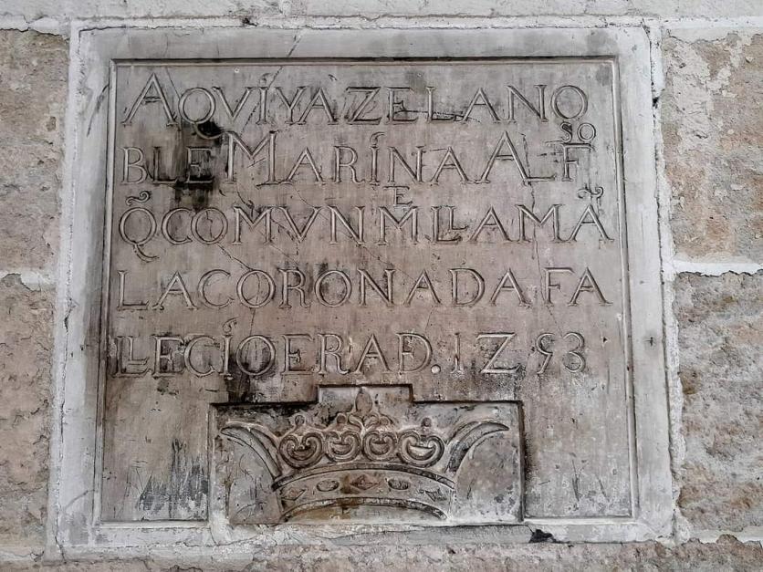 Placa dedicada a Marina Alfonso "La Coronada". Ennla Catedral,