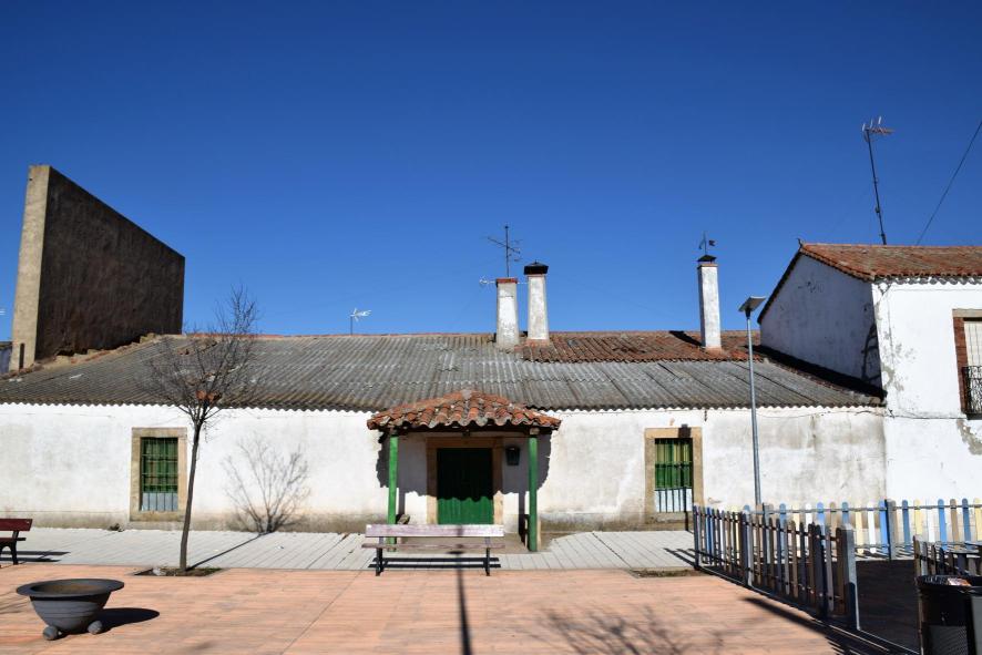 Casa con tejado de uralita y portalillo,