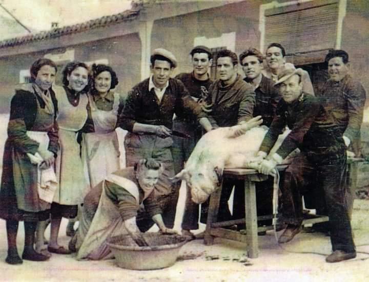Tipico del pueblo, la matanza del cerdo (foto antigua),