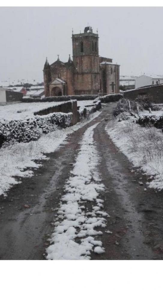 la torre del pueblo con nieve,