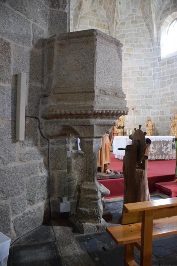 Púlpito de piedra en la iglesia de Santa María la Blanca,