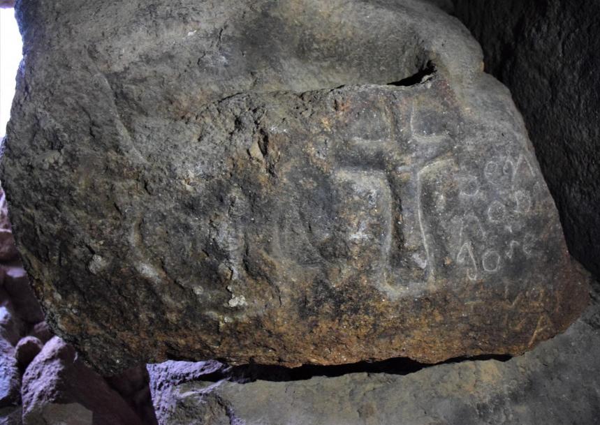 Roca con grabados en la cueva de los Leones. Finca El Berrocal,