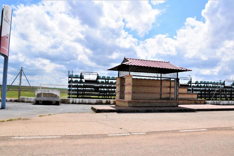 Junto al campo de fútbol,