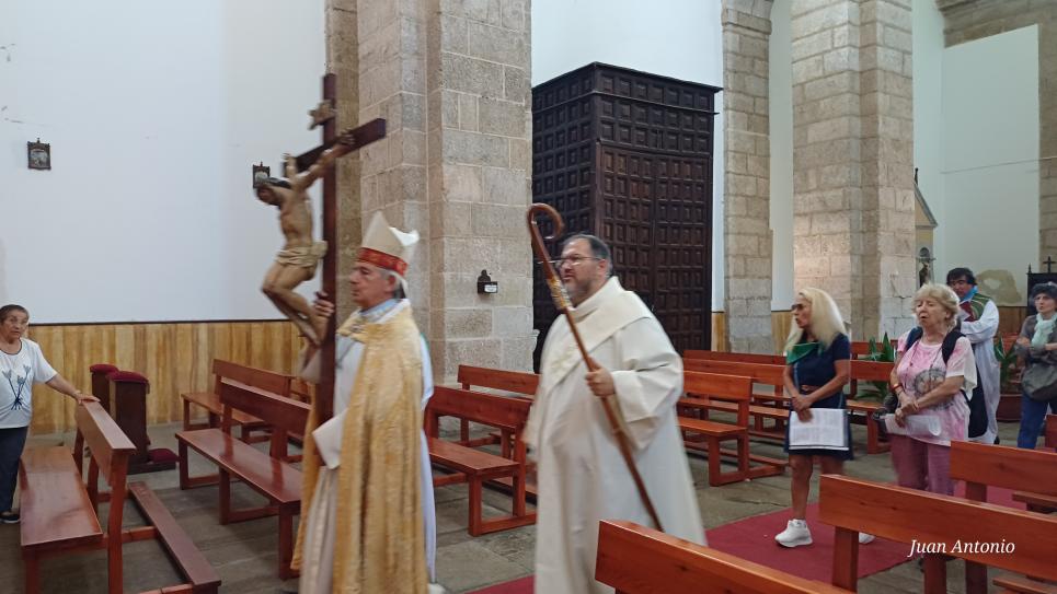 El obispo de Ciudad Rodrigo, D. José Luis Retana Gozalo, portando el crucifijo en la iglesia parro,