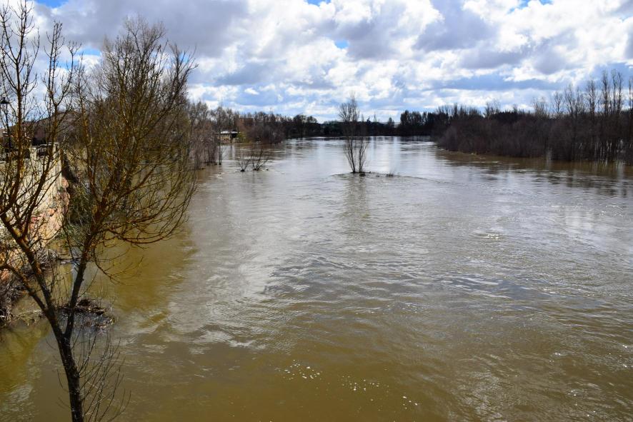 El Tormes baja turbio y crecido por las abundantes lluvias,