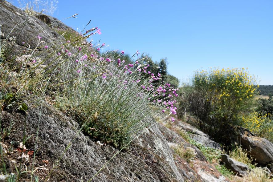 Plantas agarradas a la peña granítica,