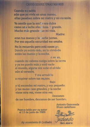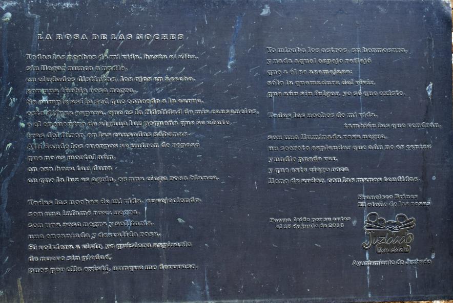 Placa con poema en una fachada,