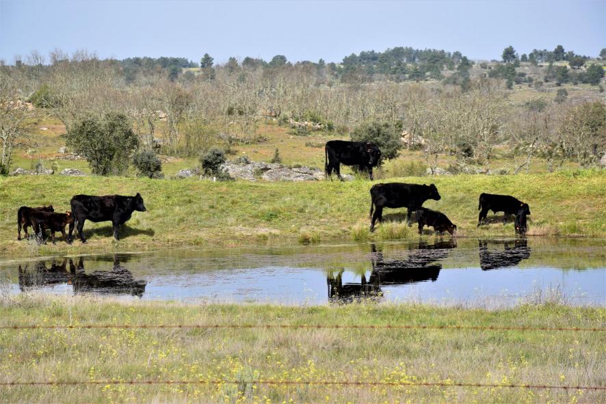 Ganado abrevando en una charca,