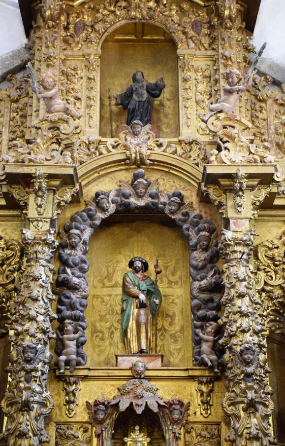 Detalles del retablo barroco de la iglesia de Santiago Apóstol,