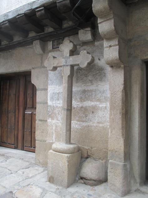 Cruz de piedra en la calle,