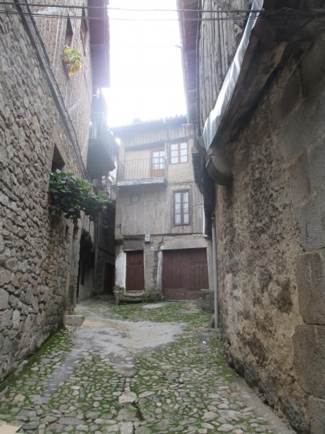Calle empedrada y casas tradicionales,