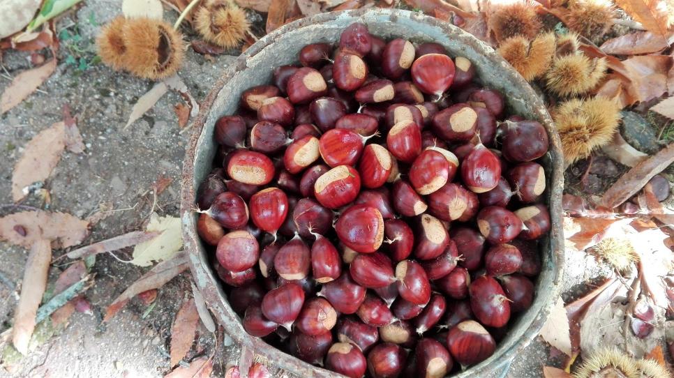 Recogiendo castañas,