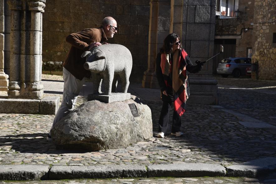 Haciendo la foto con el marrano,
