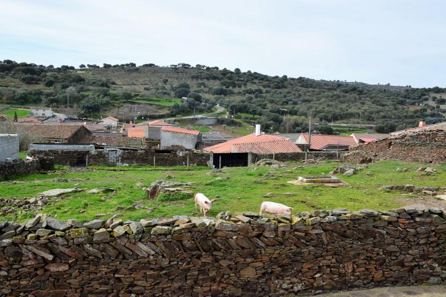 Vista parcial del pueblo recostado en la hondonada,