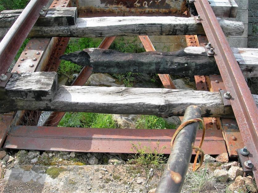 Detalle del deterioro en un puente férreo,