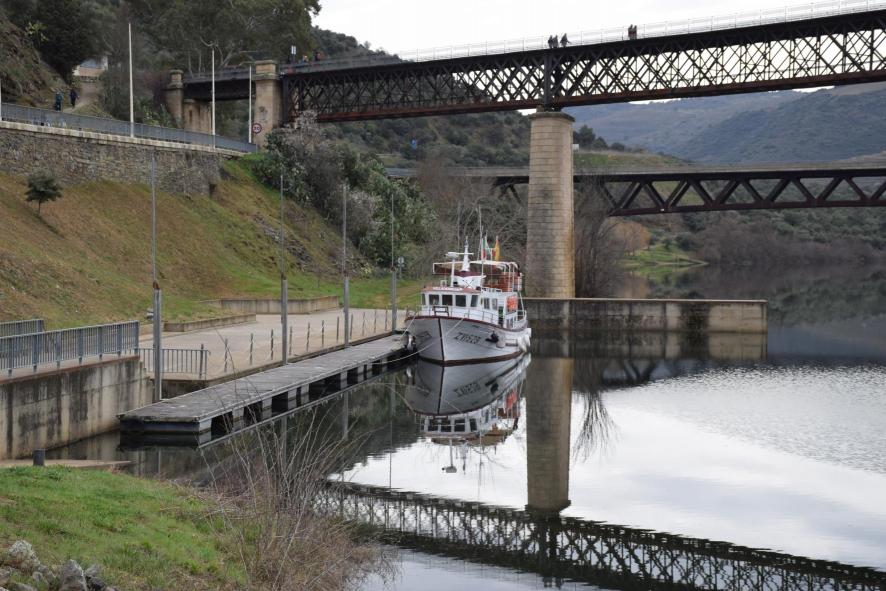Barco turístico atracado al muelle de Vega de Terrón,