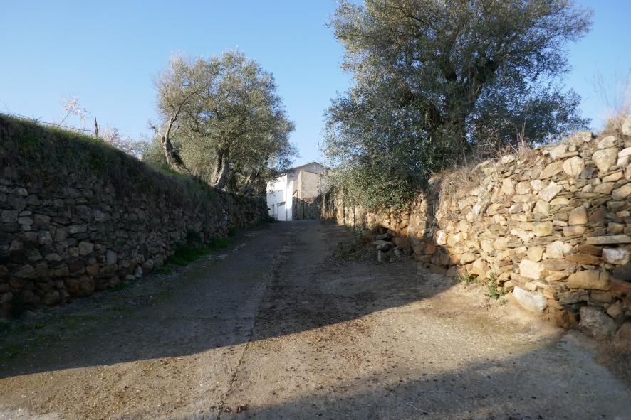 Camino de los Pozos enmarcado por muros,