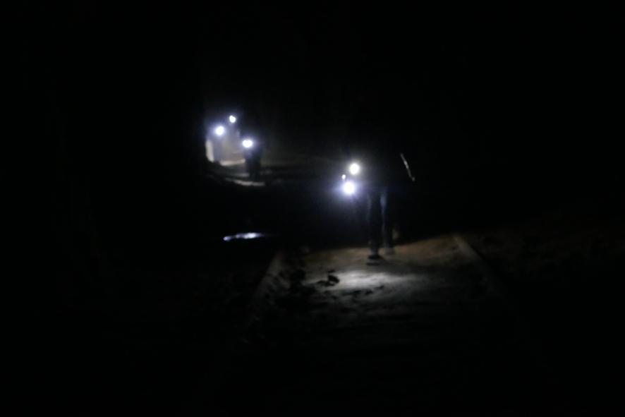 Gruzando un túnel en el camino de hierro,