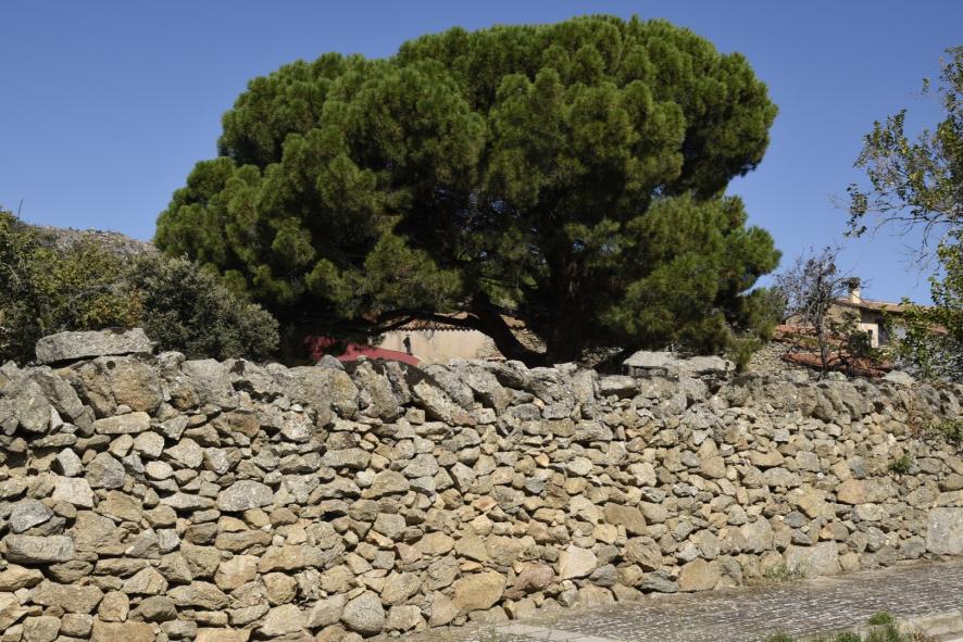 El pino y la pared de piedra,
