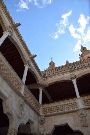 casa con arcos y reloj,