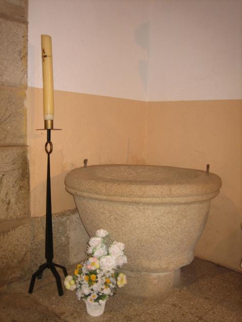 Interior de la Iglesia. Pila bautismal,