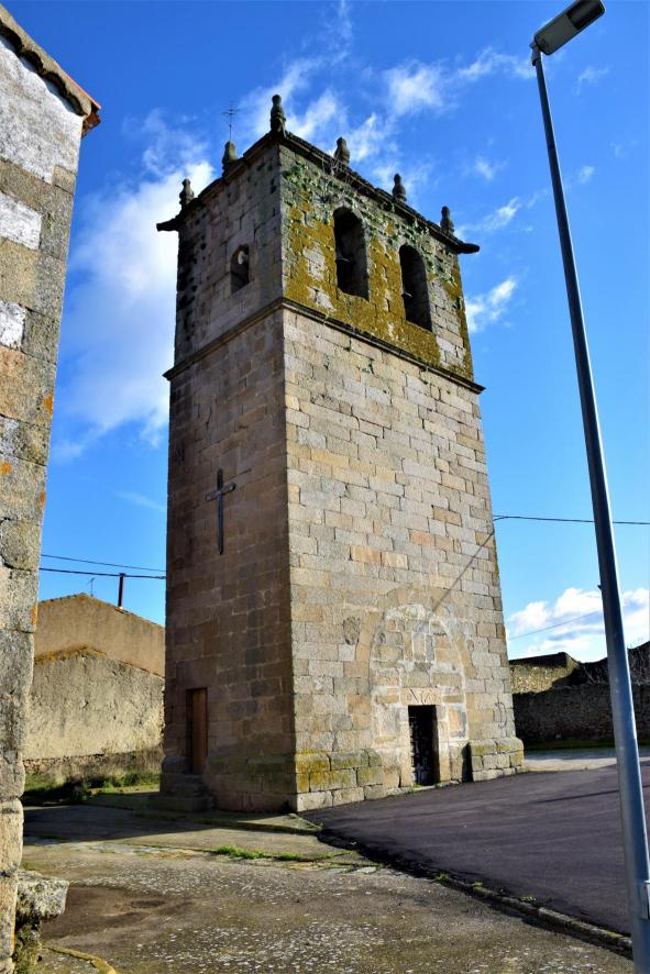 No todos los campanarios estan adosados a las iglesias, este sería un caso, pro no el único (en la provincia de Salamanca hay bastantes así). Estos campanarios, generalmente son de propiedad municipal y poco o nada tienen que ver con la iglesia, aunque sus campanas se tocan los días de fiesta y los días de misa sirven para llamar a los creyentes.