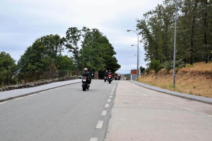 Motoristas llegando al pueblo,